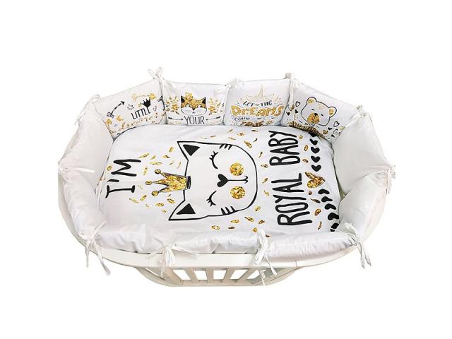 Комплект в круглую и овальную кроватку Альма Няня Детская история Кошка в короне 6 предметов