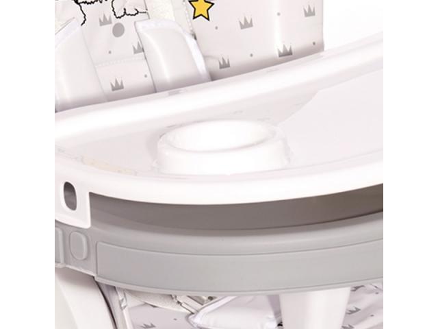 - съёмный паховый ограничитель либо ремни не позволят ребенку сползти во время еды - съемный, регулируемый по глубине столик с двойной столешницей