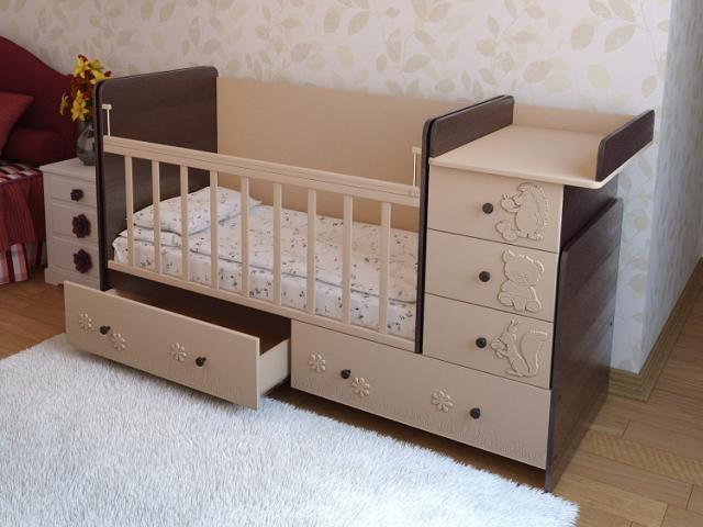 Красивая детская кроватка с оригинальным декором, которая неприменно будет украшать детскую комнату вашей крохи.