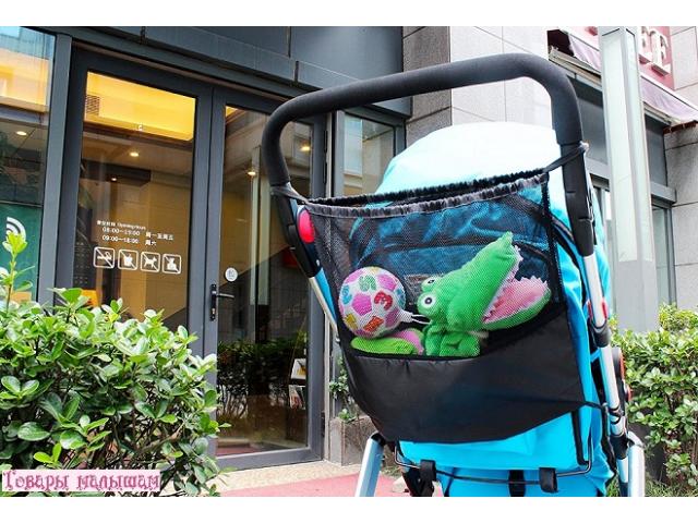 - просто крепится на ручку любой коляски и задней части автомобильного сидения при помощи ремешка, а также на стекло, используя присоски;