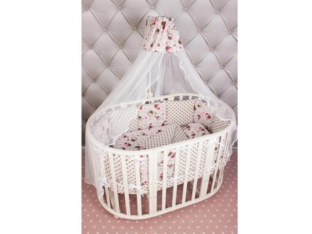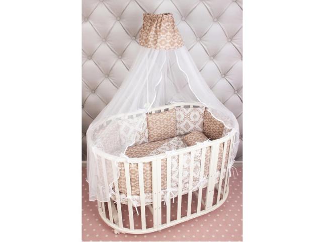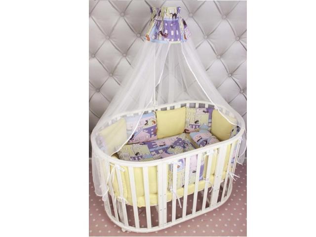 - оснащен универсальной простынью на резинке, подходящей как на овальный, так и на прямоугольный матрас;